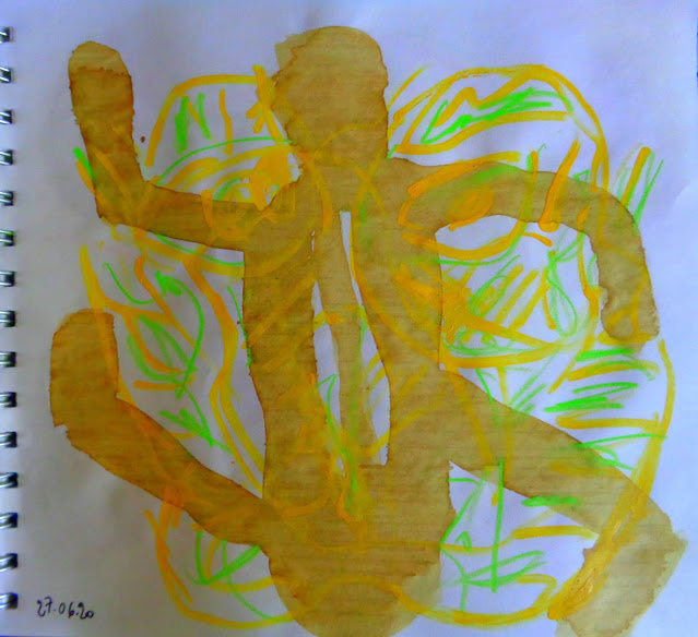 Carnet à spirales, café macéré, feutre et stabilo sur papier simili japon © 2020 France.
